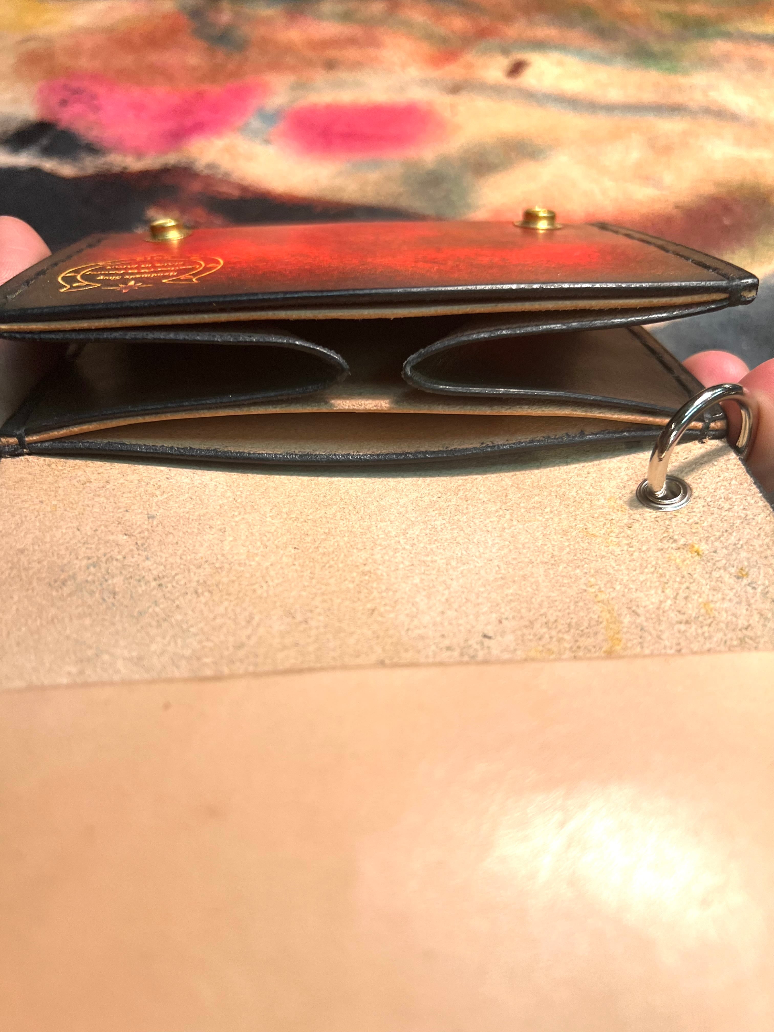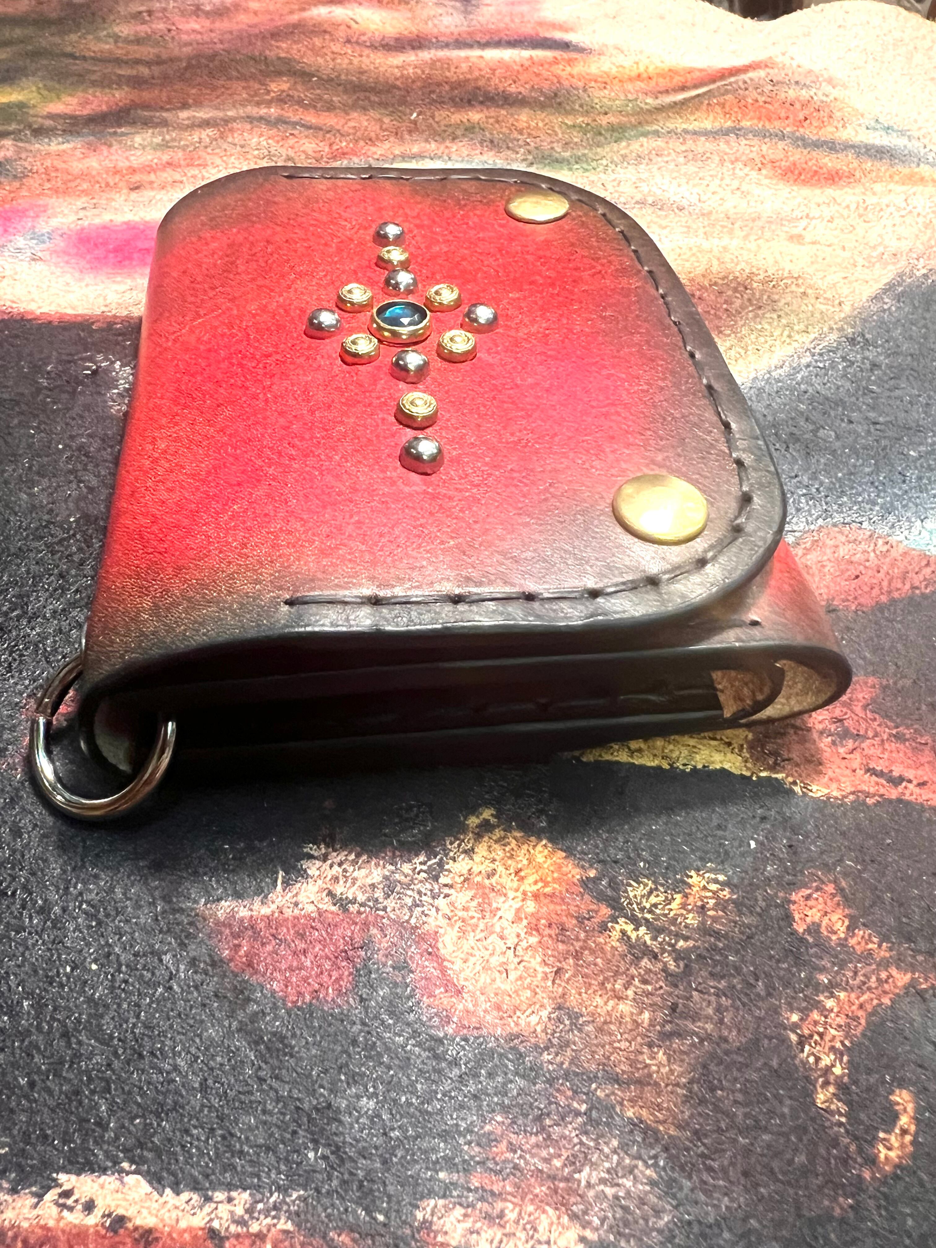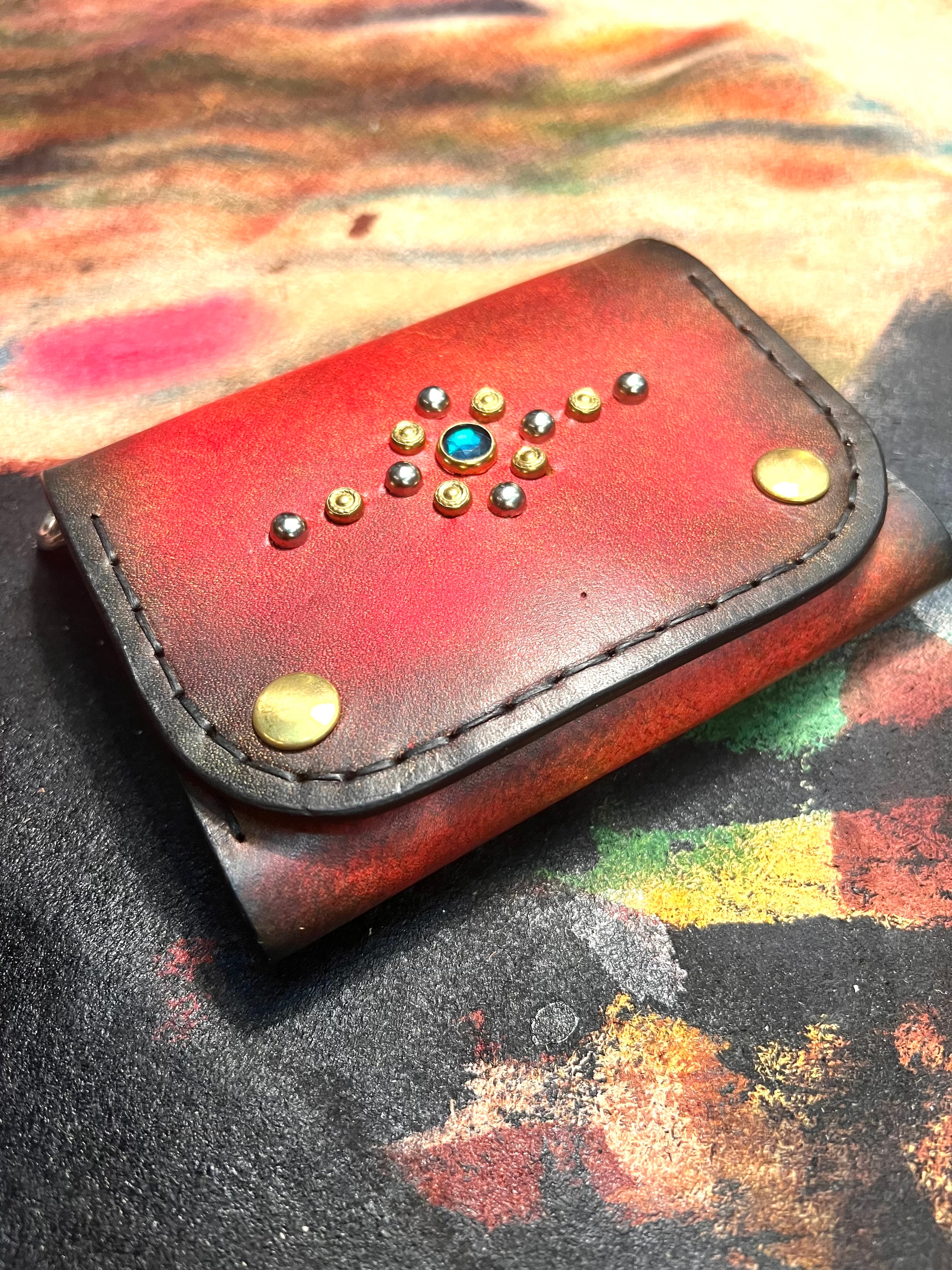 手染めのコンパクトウォレット スタッズ レッド