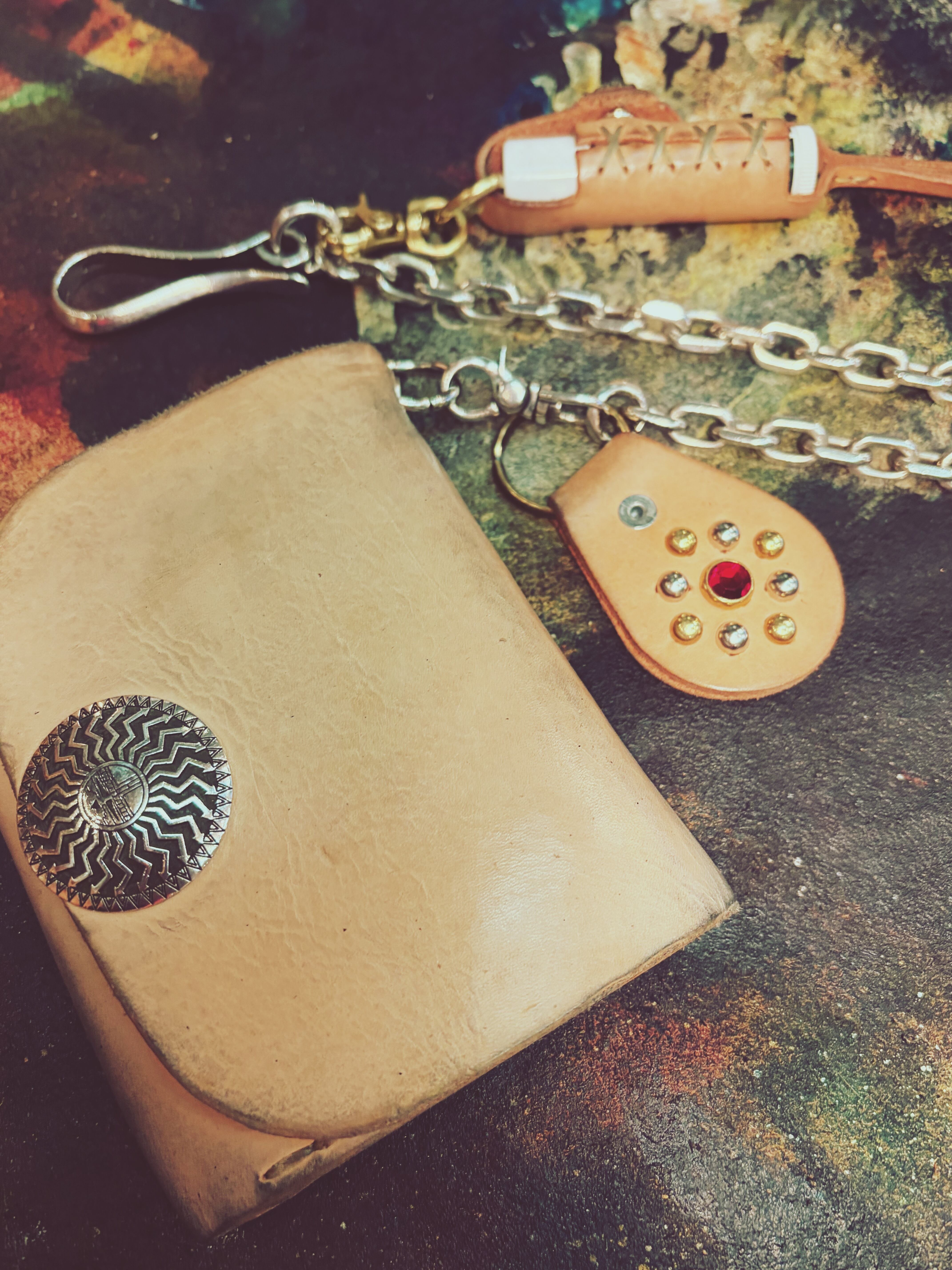 ブラス、ニッケル、ストーンのスタッズスタイルの裏のキーホルダーです‼︎