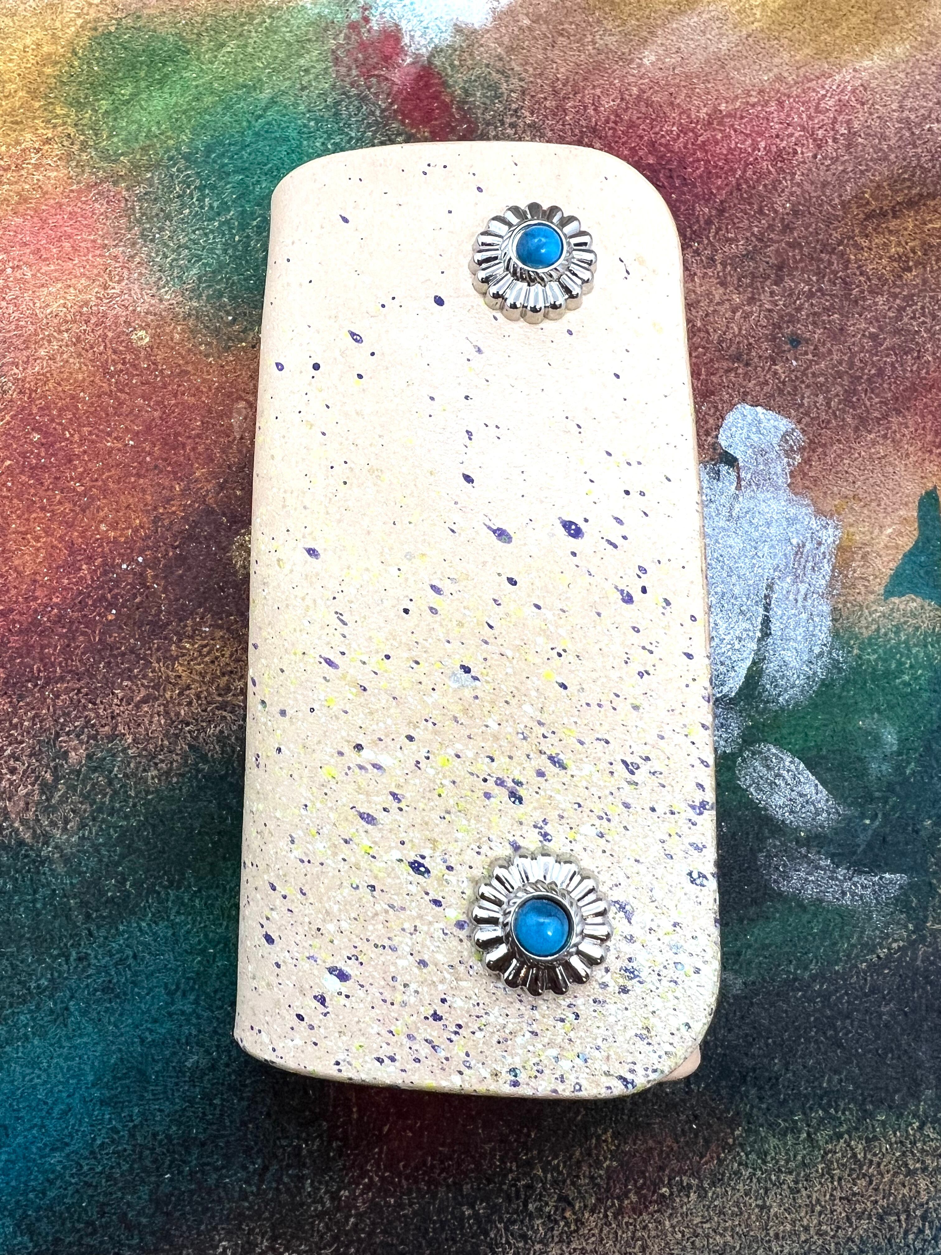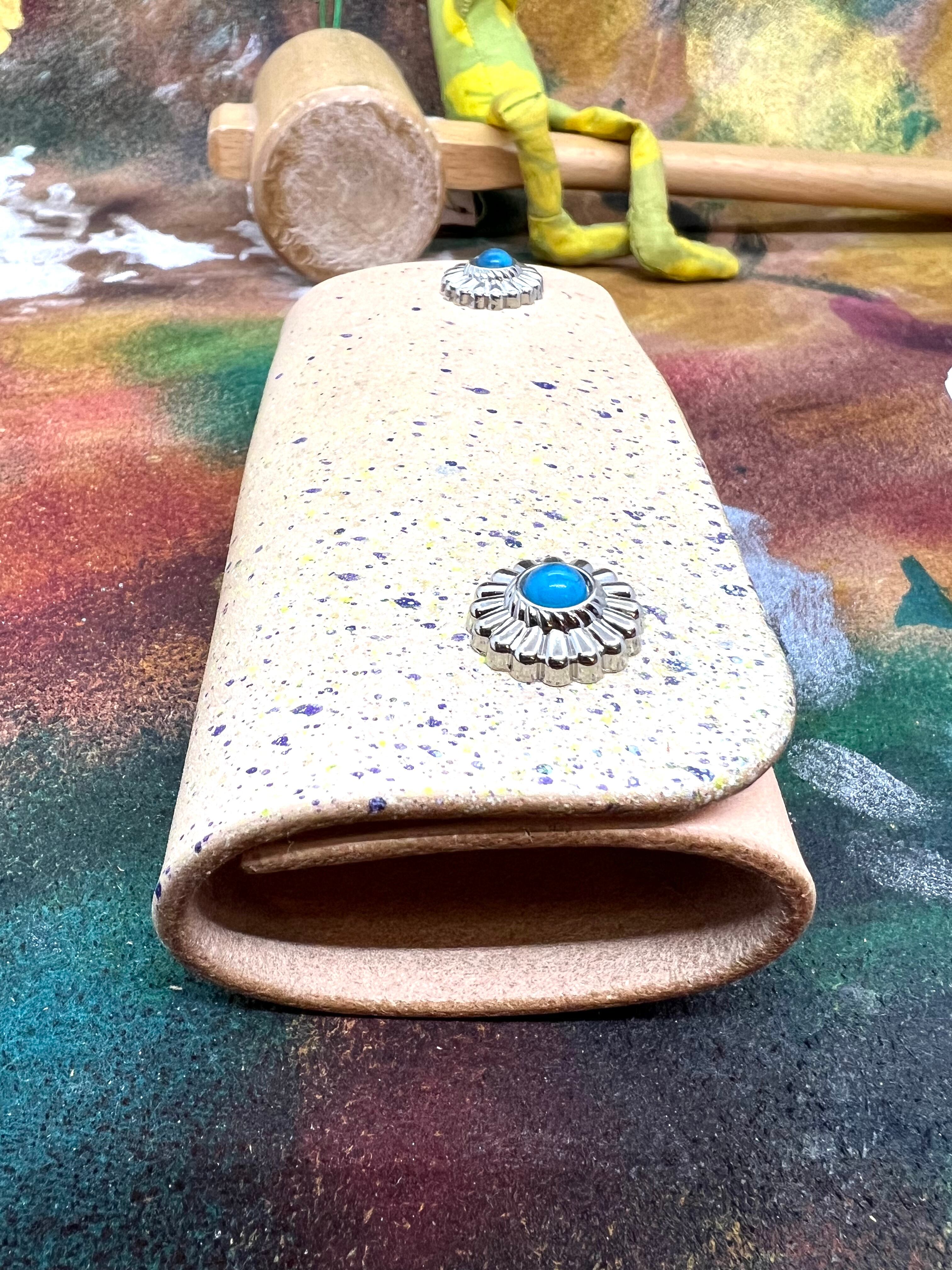 手染めのレザーキーケース 4連 スプラッシュカラー ブルー